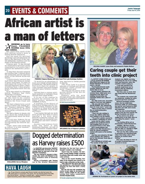 This is a great piece in the Jewish Telegraph, on Friday 08th April 2016, by Simon Yaffe on Maitre Fulgence Niamba's unique and exceptionally fascinated Hebrew-influenced art works! Really great story, and to read it click right here.